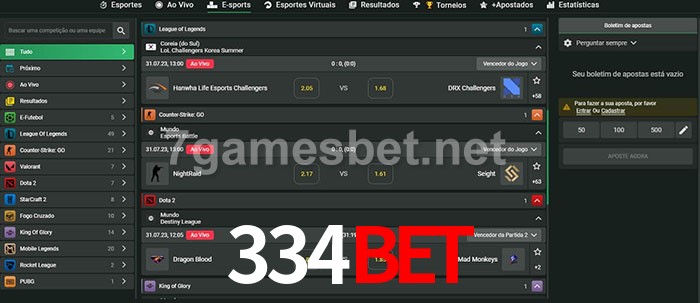 O 334bet oferece uma grande seleção de opções de apostas em e-sports com probabilidades competitivas